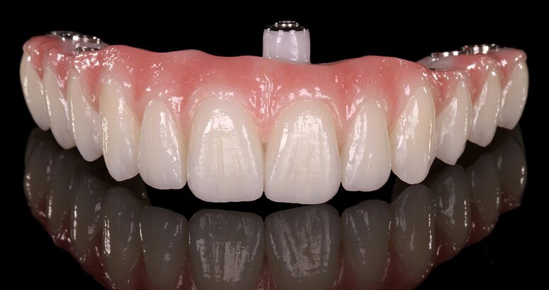 - идеальное использование специально в области имплантологии. При дефиците места в зубном ряду или для ортопедических конструкций с искусственной десной.