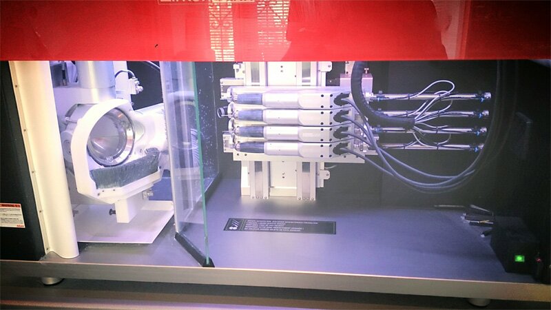 Используется фрезерный станок М5 фирмы ZirkonZahn, позволяющий фрезеровать блоки высотой до 30 мм, мостовидные конструкции протяженностью до 14 единиц и с производительностью около 100 единиц в день.